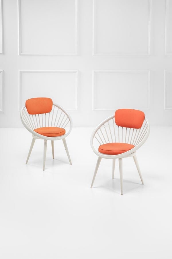 Due poltrone mod. Circle ChairLegno laccato, tessuto.